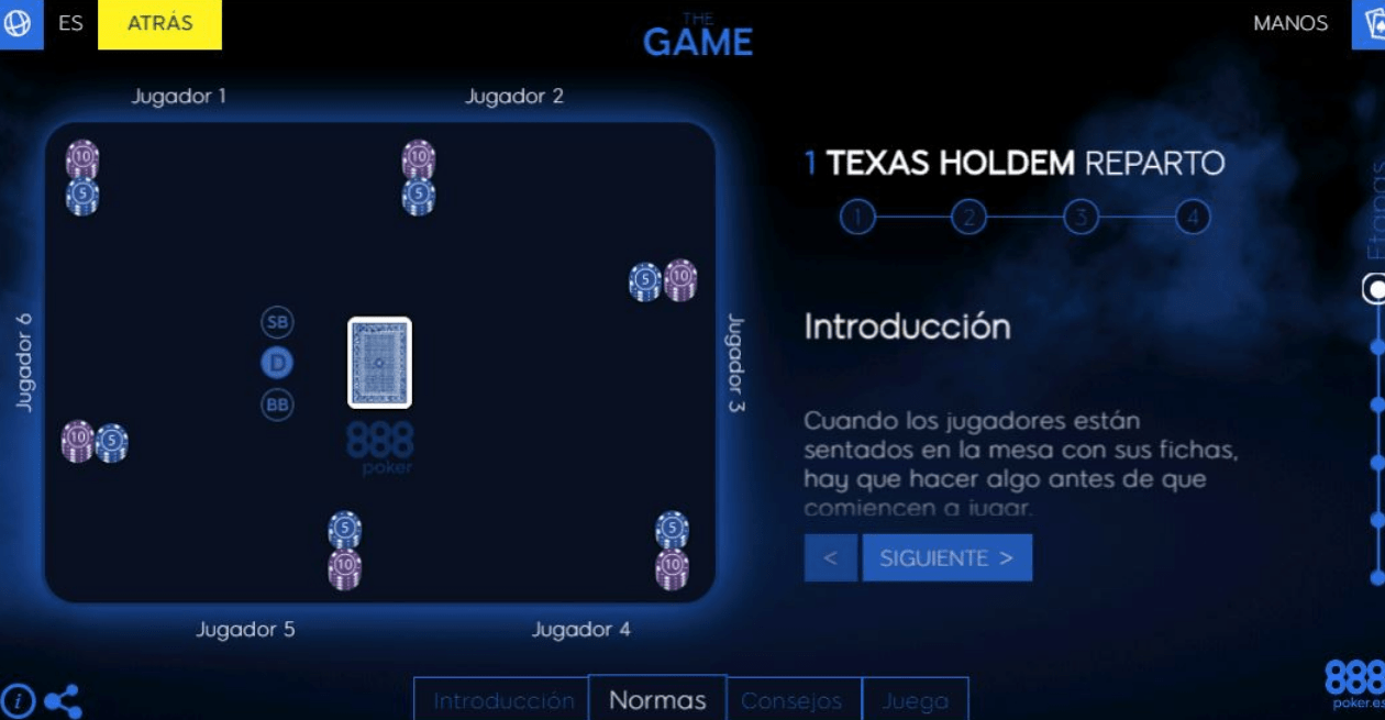 Utiliza este Tutorial de Poker Interactivo en Español aquí arriba para aprender a jugar al poker y descubrir poker reglas español.