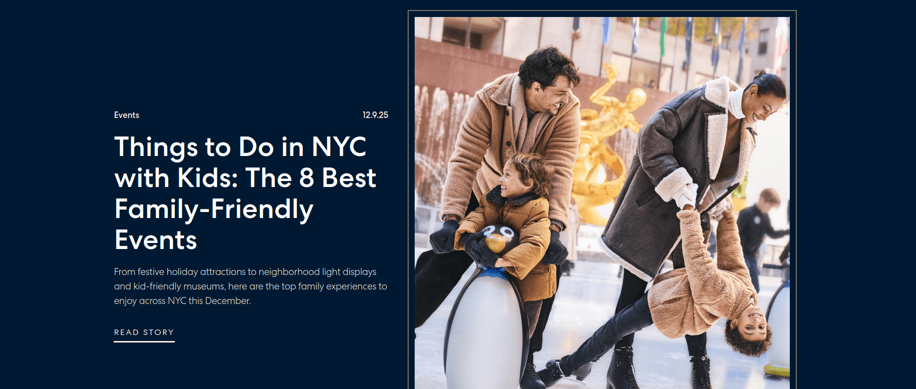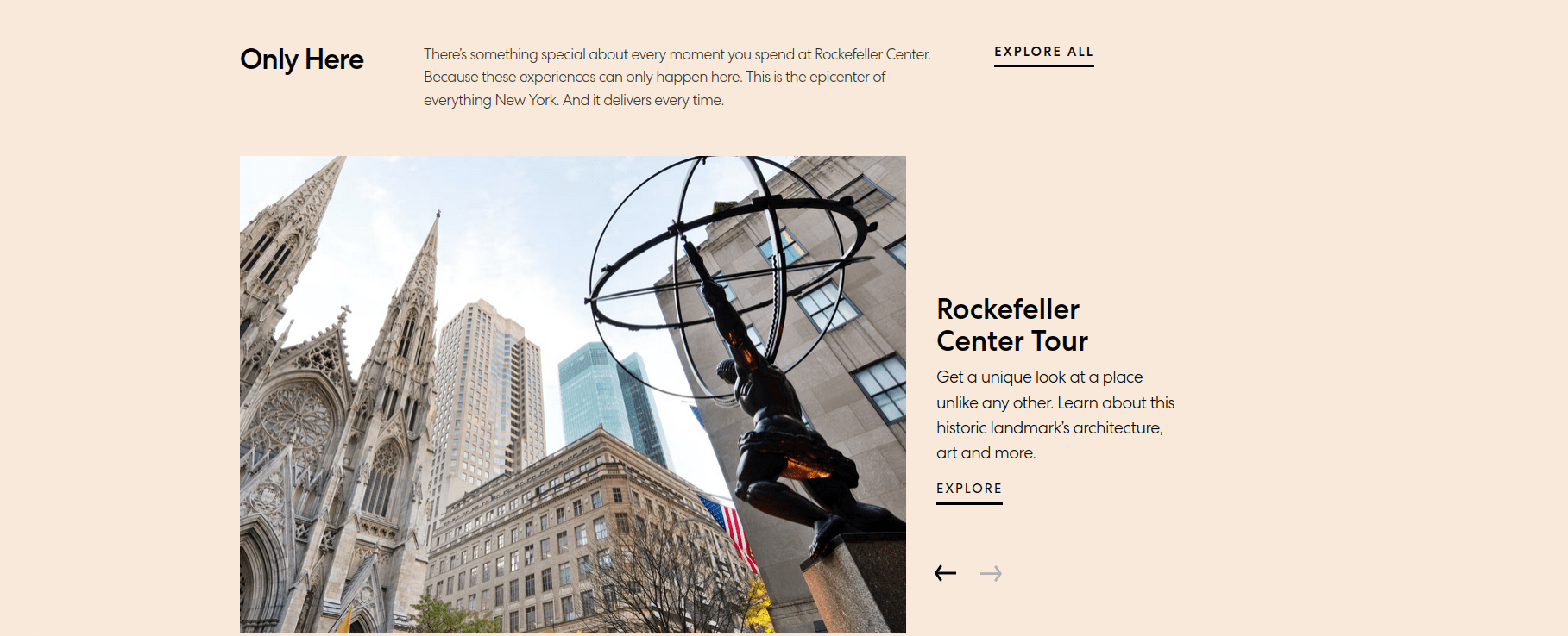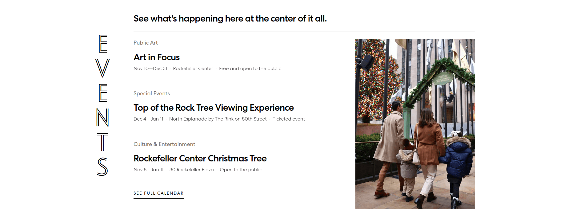 Rockefeller Center is a complex of 19 commercial buildings covering 22 acres (8.9 ha) between 48th Street and 51st Street in the Midtown Manhattan neighborhood of New York City. The 14 original Art Deco buildings, commissioned by the Rockefeller family, span the area between Fifth Avenue and Sixth Avenue, split by a large sunken square and a private street called Rockefeller Plaza. Later additions include 75 Rockefeller Plaza across 51st Street at the north end of Rockefeller Plaza, and four International Style buildings on the west side of Sixth Avenue.