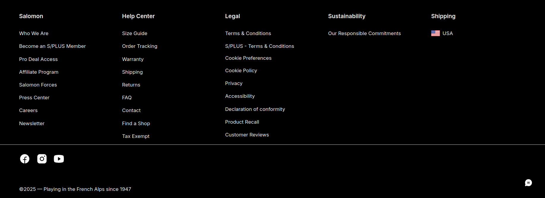 Salomon SAS is a French sports equipment manufacturing company headquartered in Annecy, France. It was founded in 1947 by François Salomon in the heart of the French Alps and is a major brand in outdoor sports equipment. Salomon is owned by Finnish retail conglomerate Amer Sports, along with Wilson, Atomic, Precor, and Arc’teryx, among others.