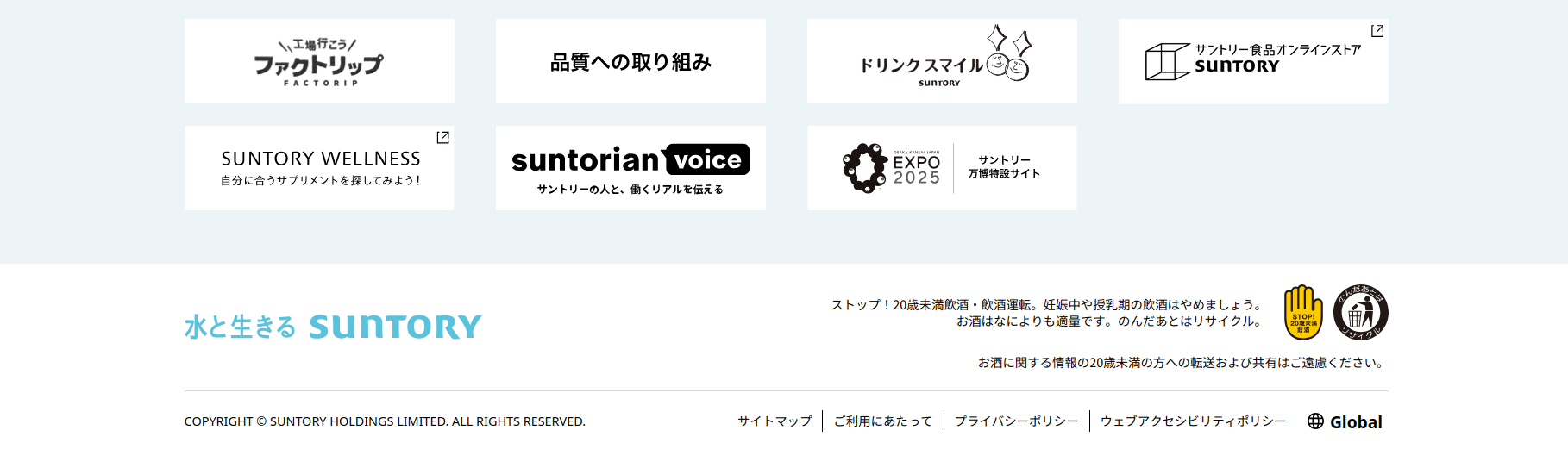 Suntory Holdings Limited. (サントリーホールディングス株式会社, Santorī Hōrudingusu Kabushiki-gaisha) (commonly referred to as simply Suntory) is a Japanese multinational brewing and distilling company. Established in 1899, it is one of the oldest companies in the distribution of alcoholic beverages in Japan and one of the largest drinks companies in the world following its acquisition of Beam, Inc. in 2014.