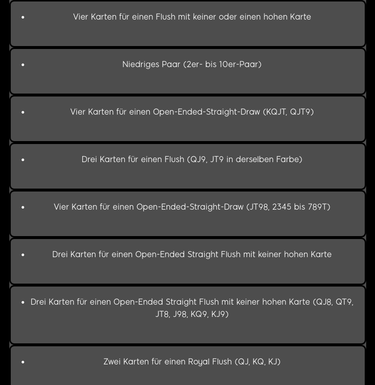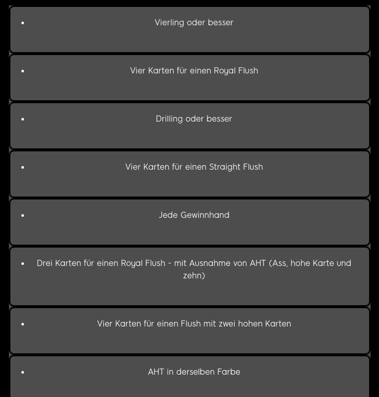 Auch die Auszahlungen für einen Straight Flush und ein Full House werden erhöht. All dies hat jedoch seinen Preis.