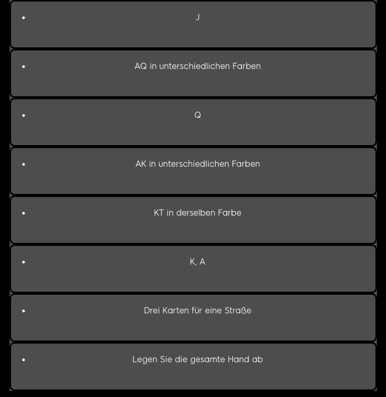 ・ Wählen Sie die Karten aus, die Sie halten möchten (falls vorhanden). Die von Ihnen gewählten Karten erscheinen in jeder der anderen Reihen in derselben Position.