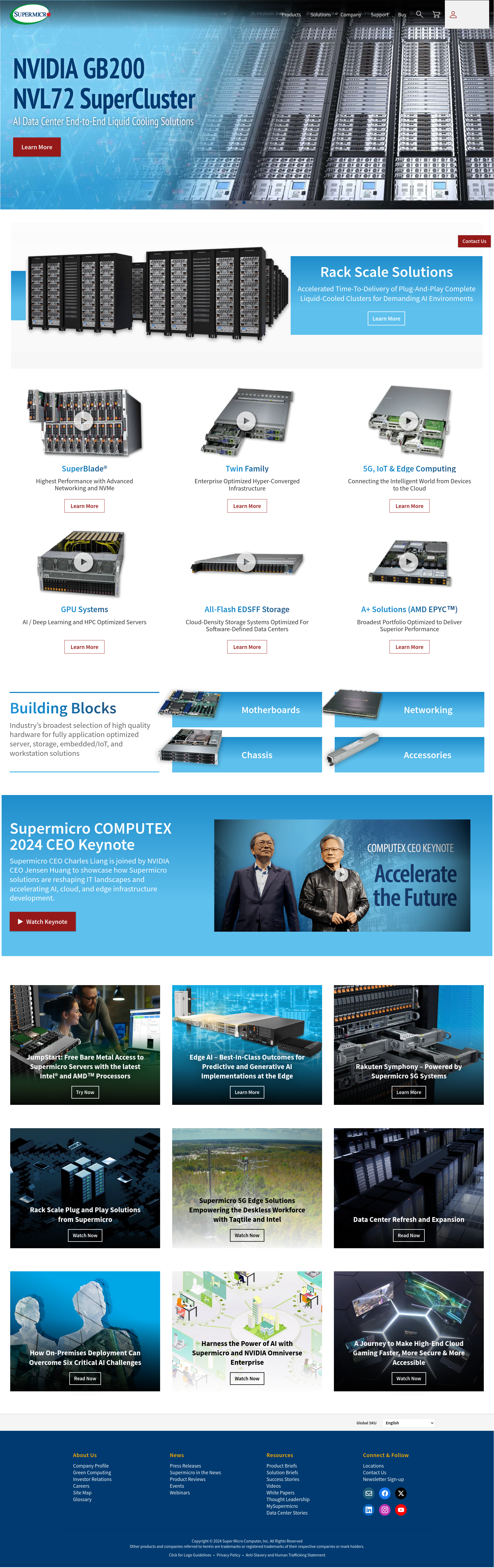 The premier provider of advanced Server Building Block Solutions® for 5G/Edge, Data Center, Cloud, Enterprise, Big Data, HPC and Embedded markets worldwide.