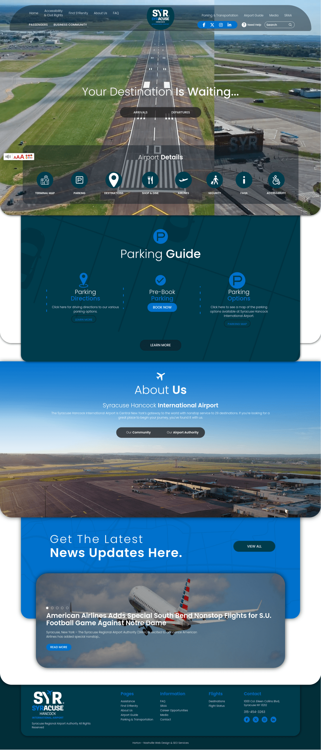 Syracuse Hancock International Airport (IATA: SYR, ICAO: KSYR, FAA LID: SYR) is a joint civil–military airport five miles (8 km) northeast of downtown Syracuse, New York. Operated by the Syracuse Regional Airport Authority, it is located off Interstate 81, near Mattydale. The main terminal complex is at the east end of Colonel Eileen Collins Boulevard. Half of the airport is located within the Town of DeWitt, with portions within the adjacent towns of Salina and Cicero.