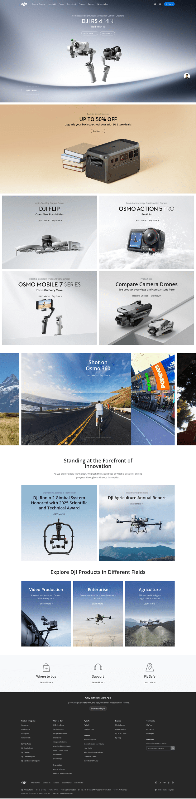 SZ DJI Technology Co., Ltd. or Shenzhen Da-Jiang Innovations Sciences and Technologies Ltd. (Chinese: 深圳市大疆创新科技有限公司; pinyin: Shēnzhèn Shì Dà Jiāng Chuàngxīn Kējì Yǒuxiàn Gōngsī) or DJI (大疆创新; Dà Jiāng Chuàngxīn), is a Chinese technology company headquartered in Shenzhen, Guangdong. DJI manufactures commercial unmanned aerial vehicles (drones) for aerial photography and videography. It also designs and manufactures camera systems, gimbal stabilizers, propulsion systems, enterprise software, aerial agriculture equipment, and flight control systems.