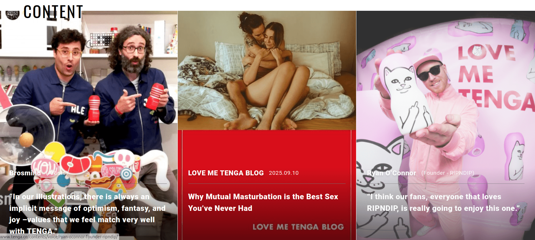 Tenga is a Japanese brand of male masturbation aids by the company of the same name. Masturbation aids (masturbators), personal lubricants, and other related products are sold under this brand. The company’s masturbators have been noted for their design aesthetics unexpected for a sex toy, and have received multiple industrial design awards.