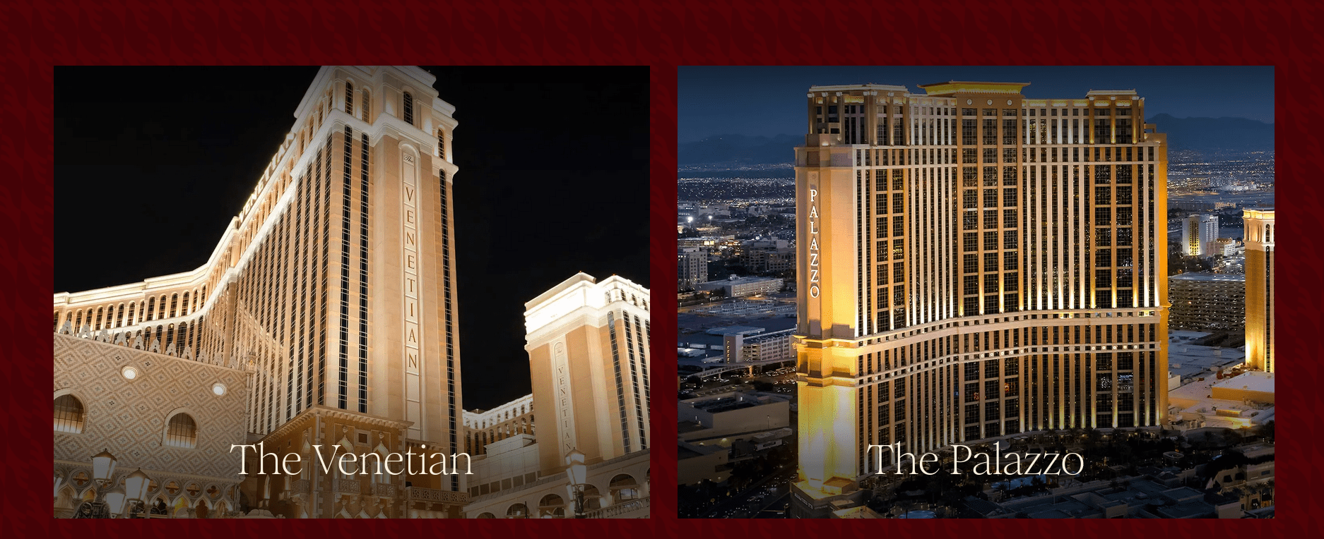 The Venetian Las Vegas is a luxury hotel and casino resort located on the Las Vegas Strip in Paradise, Nevada, United States. It is owned by Vici Properties and operated by Apollo Global Management. It was developed by businessman Sheldon Adelson through his company, Las Vegas Sands. The Venetian was built on the former site of the Sands Hotel and Casino, which was closed and demolished in 1996.