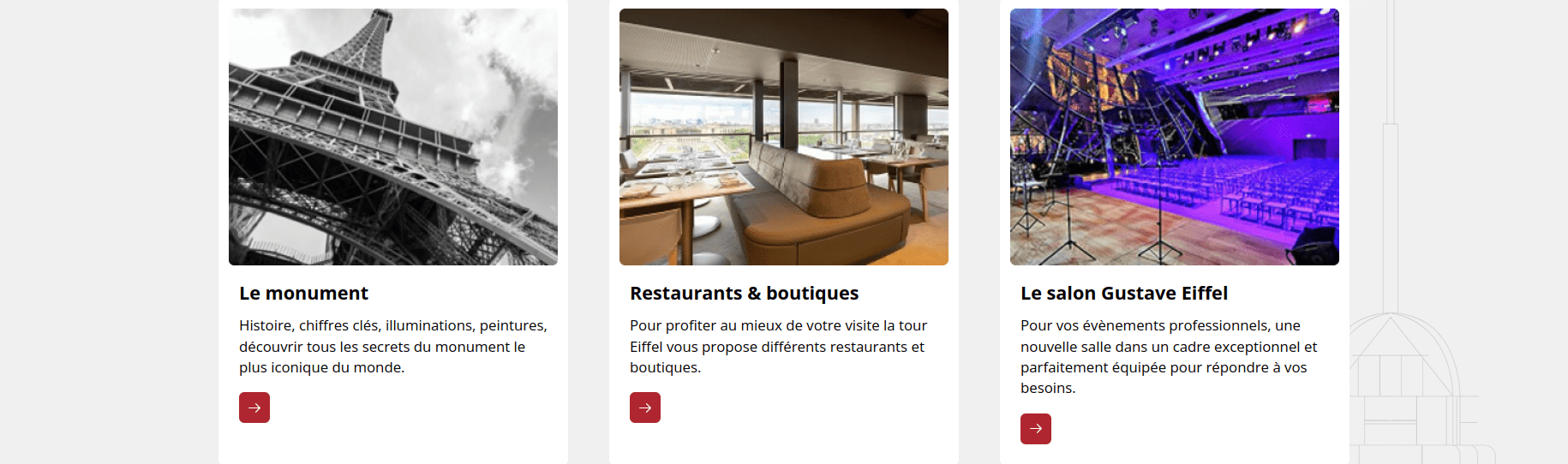 Tour de fer puddlé située à Paris qui est devenu l’emblème de la ville lumière. Elle doit son nom à l’ingénieur Gustave Eiffel, qui en est le créateur. Elle a été inaugurée le 31 mars 1889, lors de l’Exposition universelle qui se déroulait à Paris la même année. Sa hauteur est de 330 mètres, en comptant les antennes disposées à son sommet.