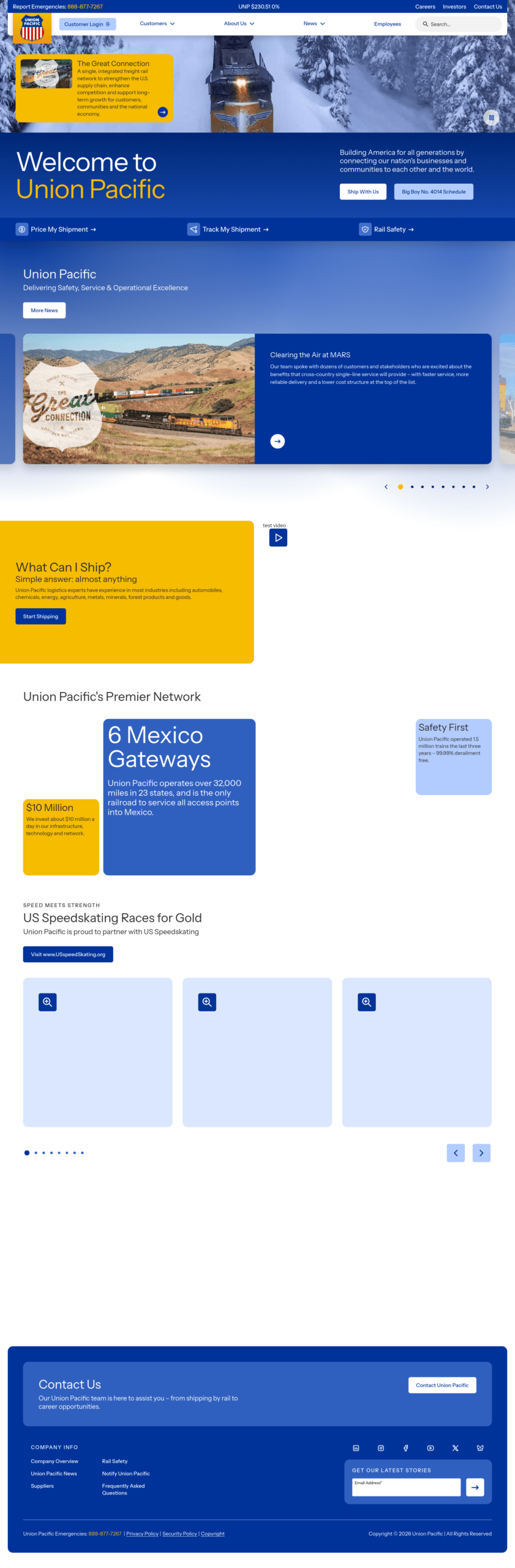 The Union Pacific Railroad Company (reporting marks UP, UPP, UPY) is a Class I freight-hauling railroad that operates 8,300 locomotives over 32,200 miles (51,800 km) routes in 23 U.S. states west of Chicago and New Orleans. Union Pacific is the second largest railroad in the United States after BNSF, with which it shares a duopoly on transcontinental freight rail lines in the Western, Midwestern and West South Central United States.