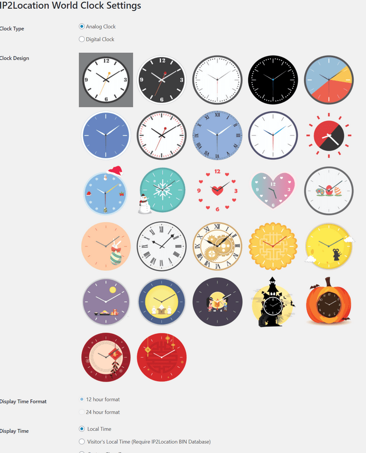 Display analog or digital clock on your site based on time selection.