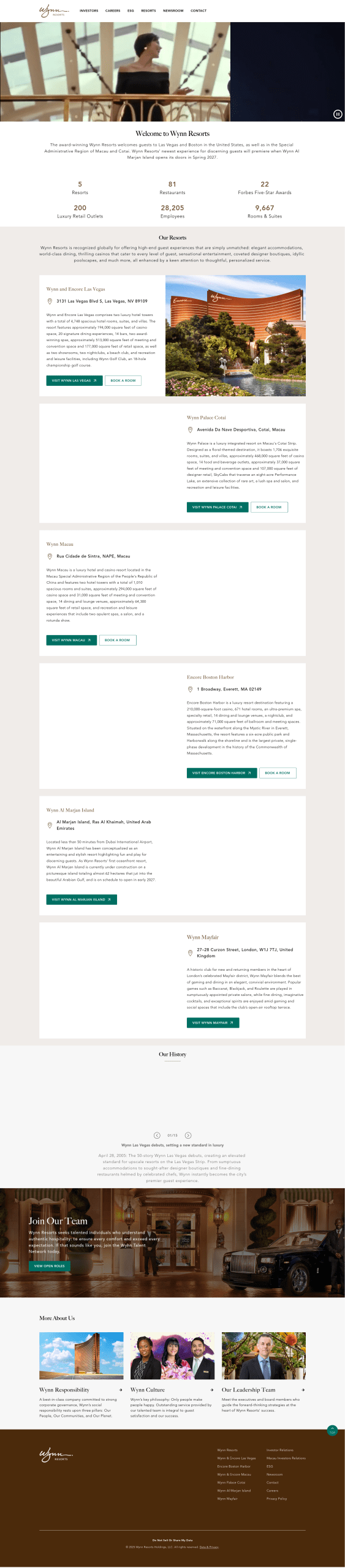 Wynn Resorts, Limited is an American publicly traded corporation based in Paradise, Nevada, that is a developer and operator of high-end hotels and casinos. It was founded in 2002 by former Mirage Resorts Chairman and CEO Steve Wynn and is now run by CEO Craig Billings. As of 2020, the company has developed six properties.