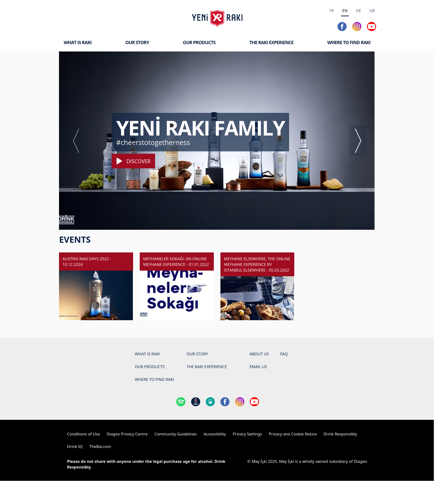 Rakı, Türk Rakısı or Turkish Raki is an alcoholic beverage made of twice-distilled grape pomace and flavored with aniseed. It is a national drink of Turkey, it is especially popular in the coastal regions. Among drinkers, it is popular in Turkic countries and Caucasian countries as an apéritif. It is often served with seafood or meze. It is comparable to several other anise-flavored liqueurs such as pastis, ouzo, sambuca and arak. The alcoholic content of rakı must be at least 40% according to Turkish standard. The largest producer of raki is Diageo; Yeni Rakı is the largest brand.