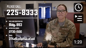 For more information, contact Pass and Registration at DSN 225-8333 or visit Building 993.