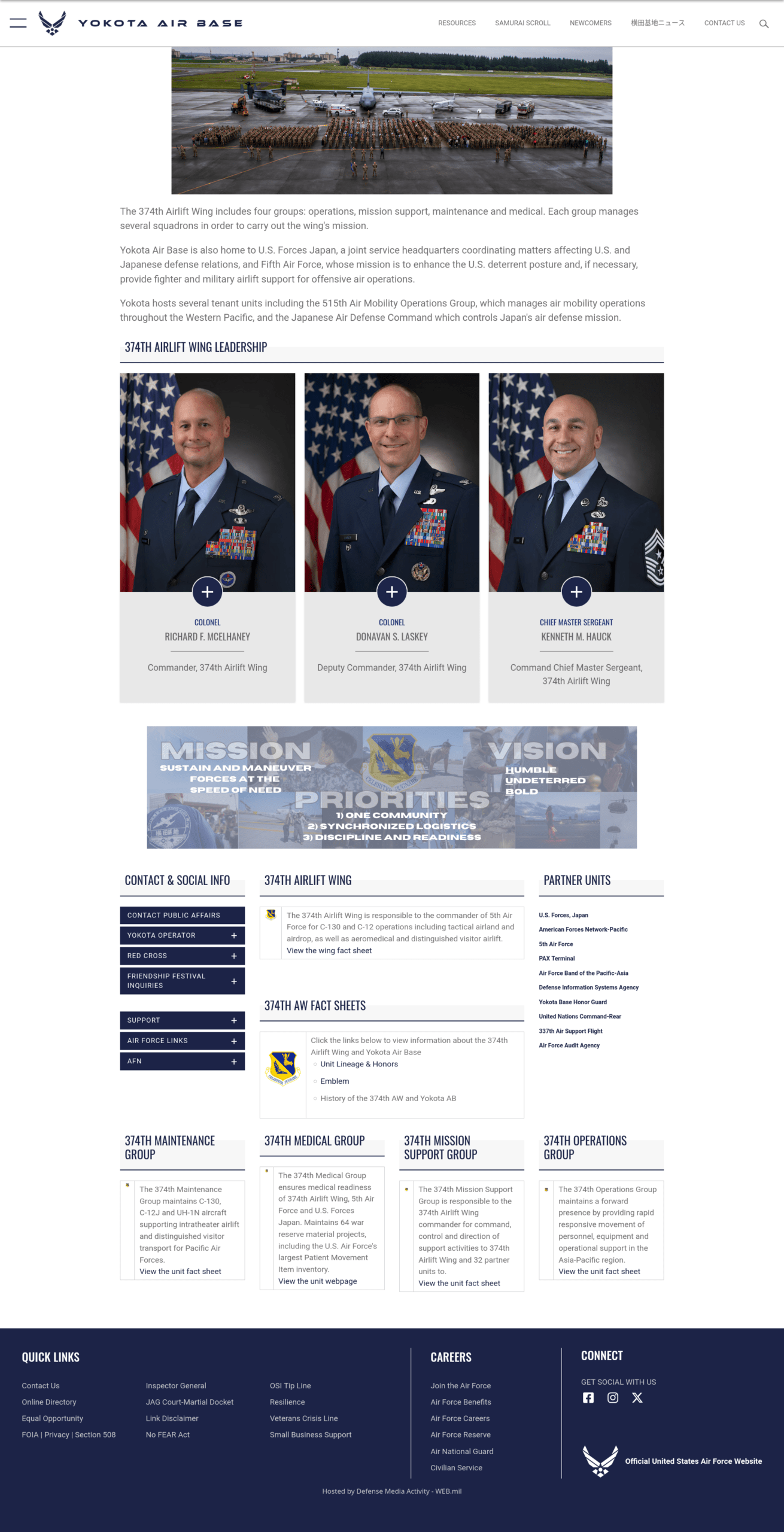 Yokota Air Base (横田飛行場, Yokota Hikōjō), (IATA: OKO, ICAO: RJTY) is a Japan Air Self-Defense Force (JASDF) and United States Air Force (USAF) base in the Tama Area, or Western Tokyo. It occupies portions of Akishima, Fussa, Hamura, Mizuho, Musashimurayama, and Tachikawa. The base houses 14,000 personnel. It occupies a total area of 7.07 km2 (2.73 sq mi) and has a 3,353 m × 61 m (11,001 ft × 200 ft) runway. It features the JASDF Air Defense Command Headquarters (ADC headquarters) since 26 March 2012. The headquarters of United States Forces Japan is also located there. Other base facilities are the broadcast center for the American Forces Network Tokyo radio service and a detachment of Pacific Air Forces’ Band of the Pacific.