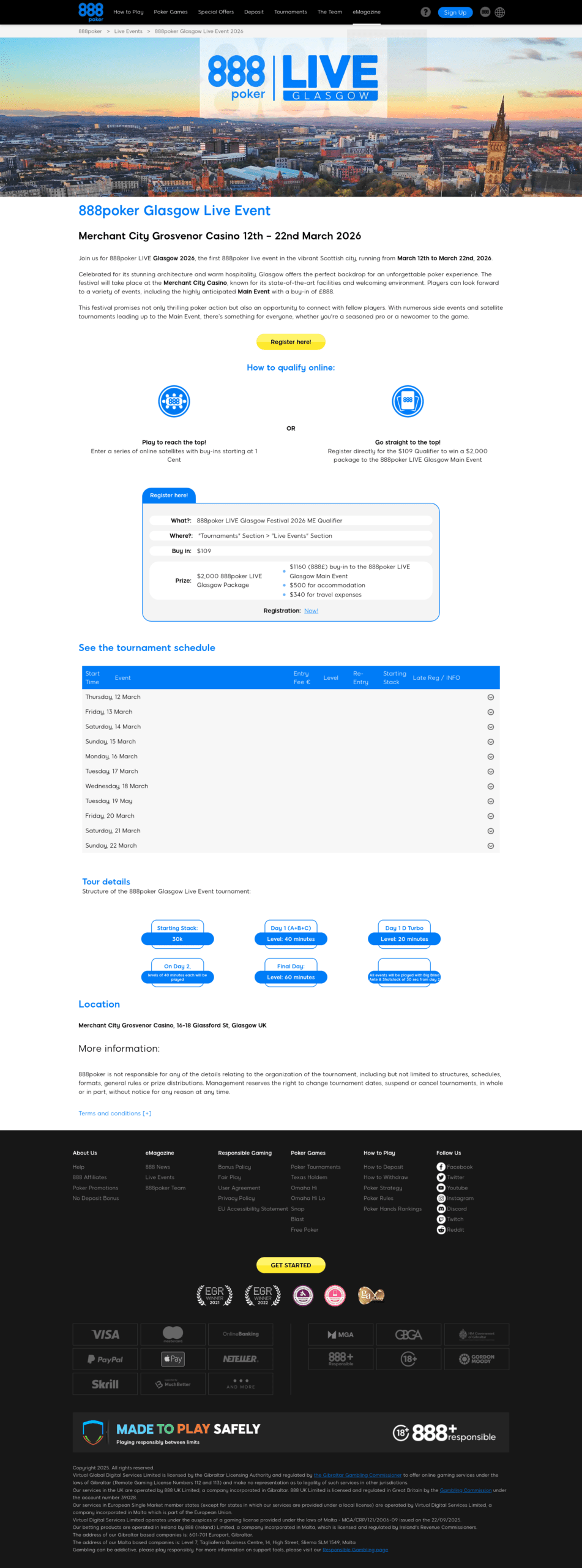 888poker LIVE heads to Glasgow for our second stop of the live tournament poker season in one of Scotland’s most vibrant, cosmopolitan cities!
